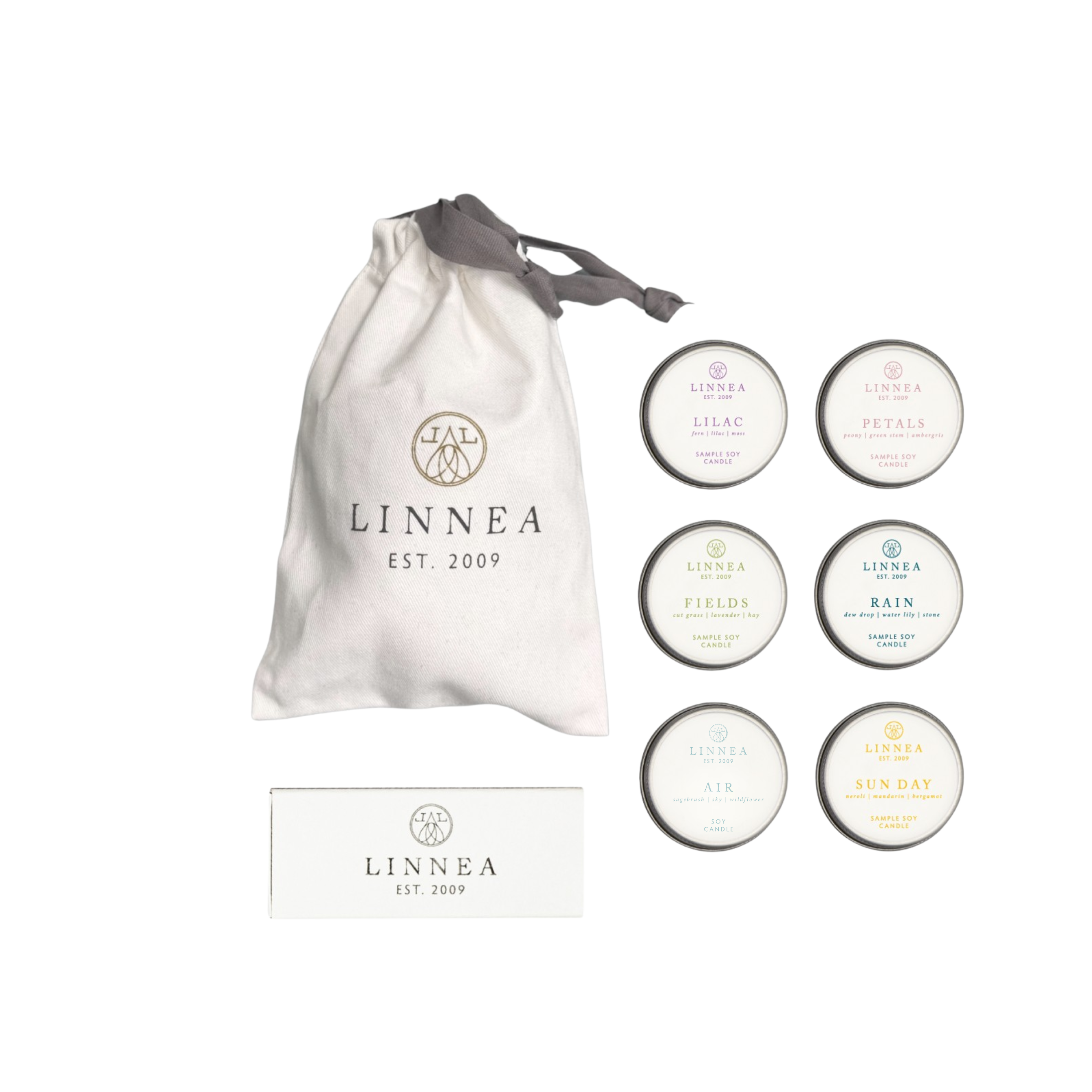 The Discovery Set includes Air, Fields, Rain, Petals, Sun Day, and Lilac. Matchbox included.