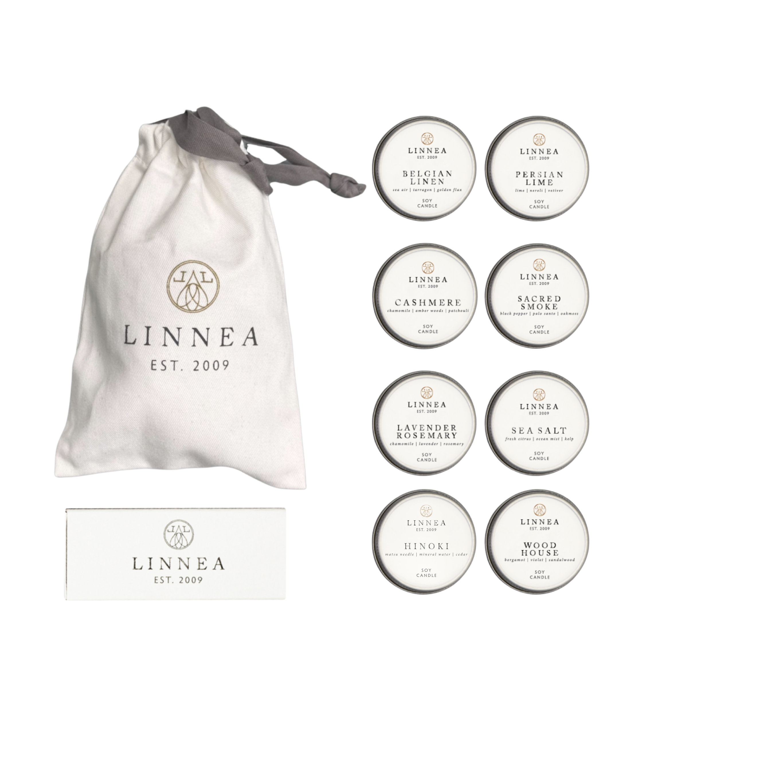 The Classic Candle Discovery Set is the perfect introduction to LINNEA, offering a chance to experience nine year-round best-selling fragrances. Each set includes a matchbox for convenience. After exploring all scents, receive a 10% discount code for your next Classic large candle.
