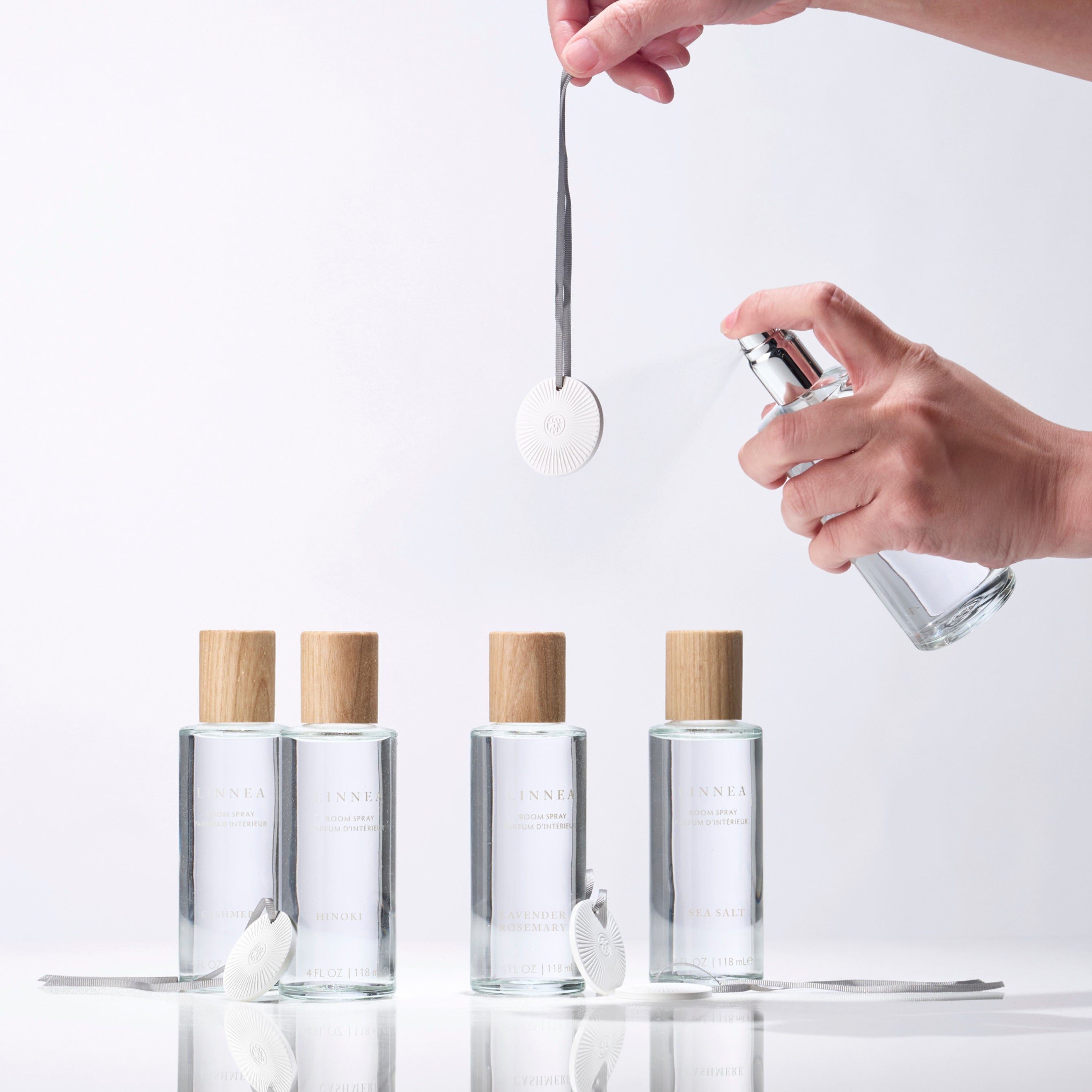 Create your own fragrance ritual with the You Pick 2 Room Spray Bundle. Select any two signature aromatic mists to layer and refresh your space. Each hydro-based spray neutralizes odors and leaves a light, lingering scent. This bundle includes a complimentary handcrafted Ceramic Scent Disk, perfect for closets, drawers, or cars. Simply mist the disk and enjoy a continuous touch of fragrance.